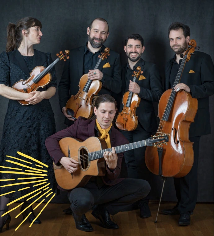 Quand un guitariste manouche croise la route d’un quatuor à cordes, les sonorités se mêlent dans un spectacle acoustique, tour à tour intimiste et enfiévré. Tempétueuses, volcaniques, imprévisibles et savantes, populaires et virtuoses...